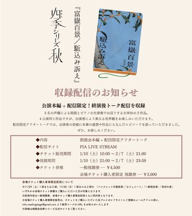 昨年11月に行われた朗読劇が昨日から配信され、早速配信チケットを
