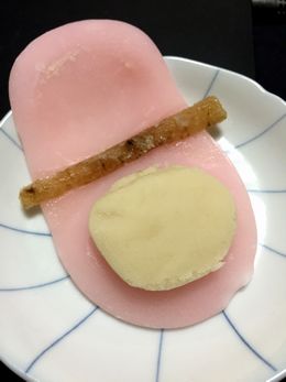 新春の茶行事で欠かせない生菓子「花びら餅」を頂きました。
