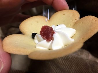 真ん中のクリームはなめらかでふわっふわで一口で食べちゃえるサイズ。