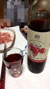 母が旅行先で買ったワイン。おつまみは生ハムetcでした。