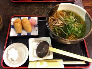 母は三色そば。私は山菜そばといなり定食。いなりが食べたくね。