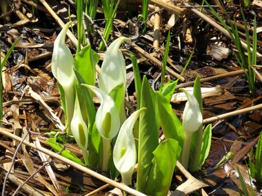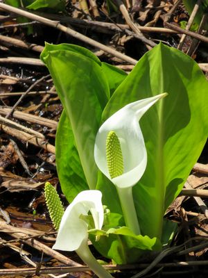 その途中にミズバショウの群生を発見。桧原湖の西岸に位置します。