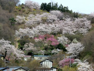 ここは桜や梅、花桃など花が咲く木々が植えられた山です。