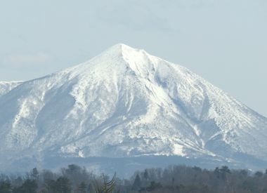 下に降りてきました。振り返るとピンクに染まる山。ステキです!!
