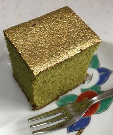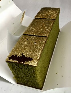 金箔が乗った抹茶カステラでした。めでたそうなカステラ。