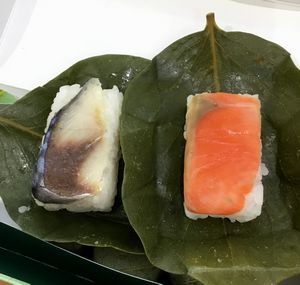 柿の葉寿司です。サバとサケでした。