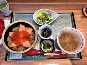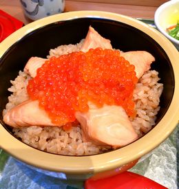 ご飯も鮭の煮汁で炊いています。煮汁が染みて美味しかった。