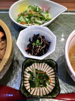 はらこ飯にあら汁に小鉢にサラダとたくさんついていました。