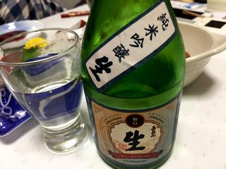 やっぱり刺身の盛り合わせは注文しなきゃね。飲み物は日本酒(太平洋純米酒)。