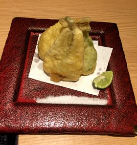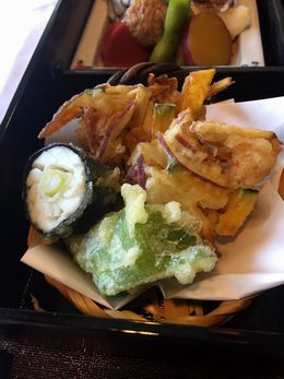 天ぷら(海老と野菜かき揚げと白身魚のなんば巻揚げ。八寸六盛。