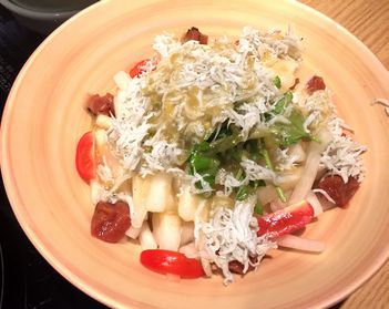 大根とクレソンの和歌山しらすたっぷりサラダ。だし巻き玉子。