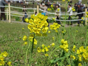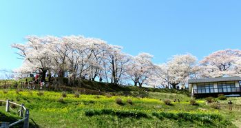 再び三春滝桜。菜の花と・・・。近寄ると菜の花が香ってきます。