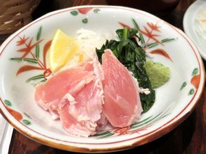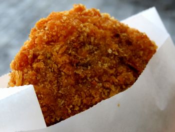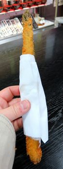 歩き疲れたので休憩。街中で見つけた鳥文肉店のグルメンチ。
