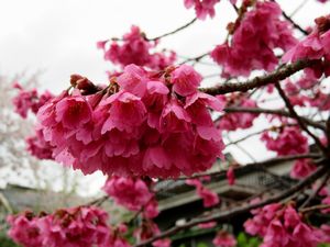 三春町歴史民俗資料館北側にある紅枝垂桜です。