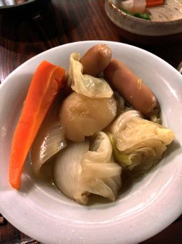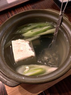 料理は、湯豆腐とカズさん手作りシューマイ(大粒3個)。