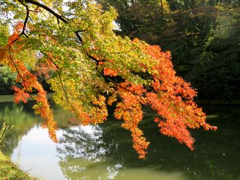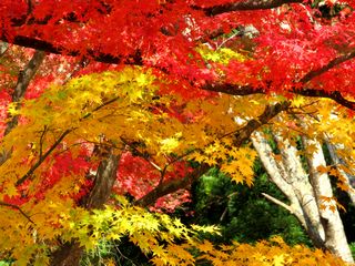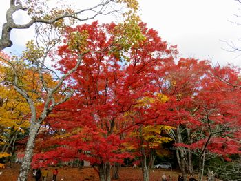 神社の紅葉はちょうど見ごろで燃えるような赤色でした。