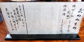 ちなみにメニューです。天ぷらはもうやってないんだ・・・。