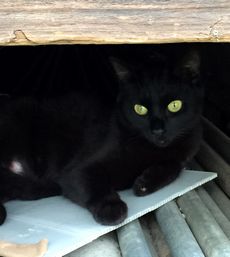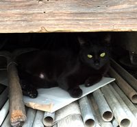 境内の下に隠れていました。ツヤツヤ真っ黒で目がキレイ。