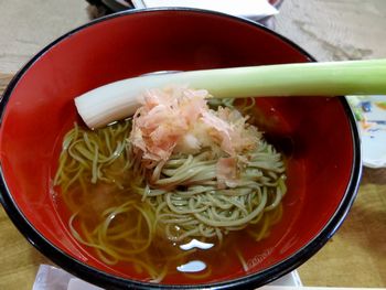 その昔、会津の殿さまを唸らせた高遠そば。長ネギを箸がわりに食べます。