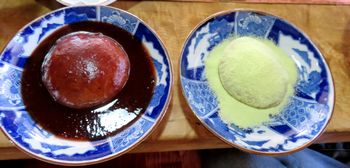 後から運ばれたのは栃餅のあん、きなこのミックスです。