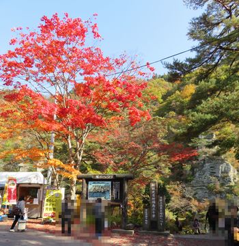 車窓から見る山の紅葉です。晴れて良かった(^^)