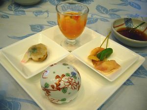 それは、かけそばと天ぷら盛り合わせ(いか2個にしん2個天ぷらまんじゅう1個)。