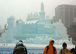 雪祭りの会場は見に来たお客でいっぱいでした。