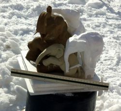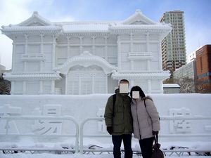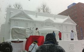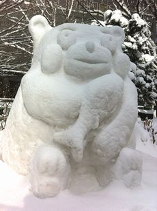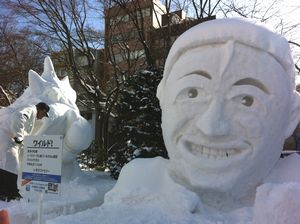 雪像を作る様子が見られました。写真右が参考資料?