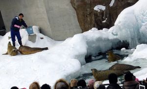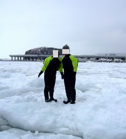 海岸近くに流氷の上を歩く体験させてくれるお店があります。