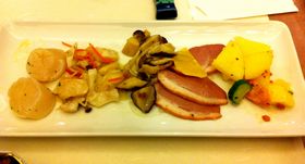メニューはオードブル盛り合わせ(セルフ)、豚の沢煮鍋