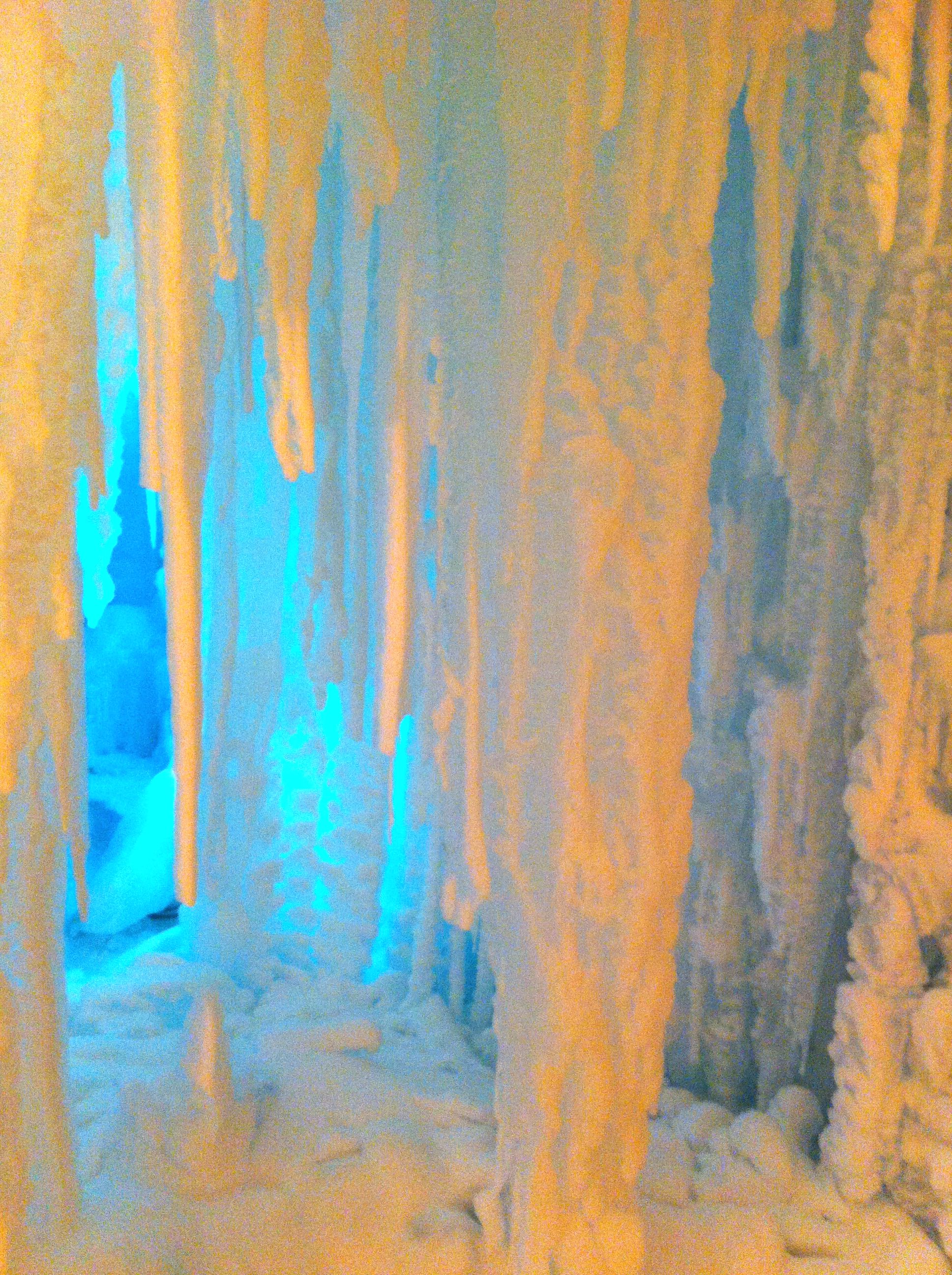 氷のトンネル、アイスドーム、滑り台などが設置されています。