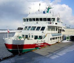 いよいよ流氷砕氷船おーろらに乗船し流氷を見に行きます。