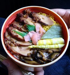 お弁当を食べるときも揺れるたびに必死でお弁当を抱え込んで