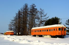 ディーゼルカー2両が当時のまま展示されていました。