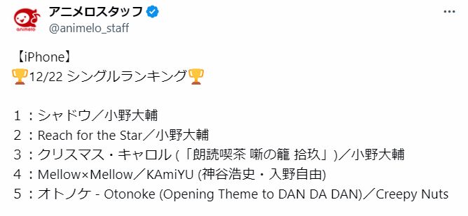 アニメロのスタッフがやっているXで、12/22にiPhone で