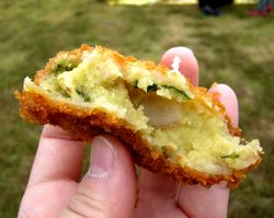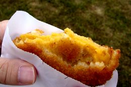 左がはまぐりカレーコロッケ、右がとまとミートコロッケです。