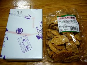 右は紅梅焼でカッチカッチの梅の形をしたおせんべい。