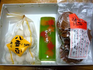 左はその中身。くずもち、八壷豆、紅梅焼です。
