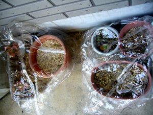 焼けるまで炭火の煙にいぶされて服にニオイがついてややブルーに。