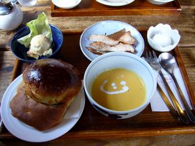 ここで買い物したり食べたりすると100円で1個のスタンプを