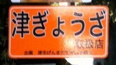 ご当地の津ぎょうざが食べられる証のステッカーが貼ってありました。