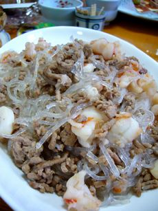 左は春雨の炒め物。さっぱりとした味付けでした。ちょっと春雨が長過ぎ!?