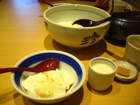 おぼろ豆富(2人前)と豆乳です。柔らかく喉越しの良い豆腐でした。