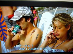 男性の左腕に注目してください。何か字が書かれていますよね。