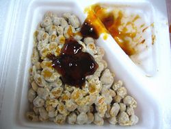 他のメーカーの納豆ですが、タレの中に大根おろしや