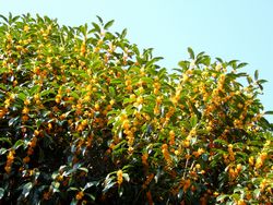 終わって下に落ちると、キンモクセイの花ジュウタンが出来るほどなんです。