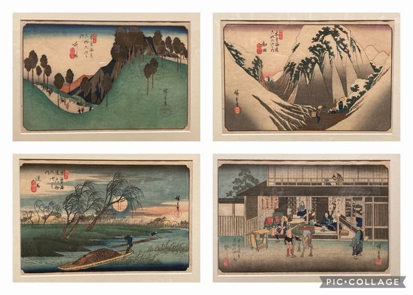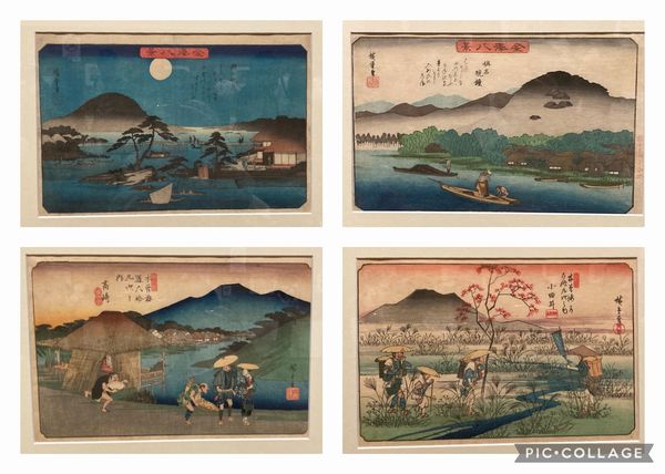 向かって左上が木曽海道六拾九次之内「あし田」で隣が
