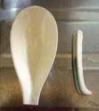 片付けている時のことですが、鍋やレンゲ(陶器の)を洗っている時です。ふと気がつくとレンゲの柄の部分が綺麗に折れていました。なんで???と思いましたが、思い当たる節が・・・。それは、水につけておいたレンゲのうえに、鍋の残り汁(アツアツの)を流してしまった事。温度差で割れたのかな??これぐらいしか思い当たらないですね。落としてもいないしなぁ。