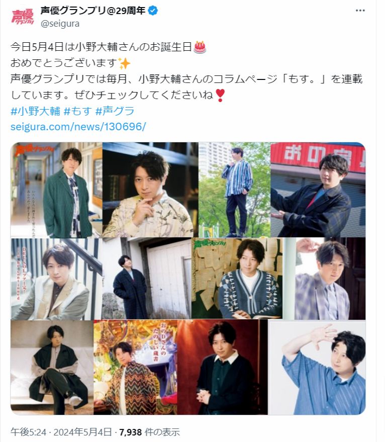 今日、5月4日は声優・小野大輔さんのお誕生日です。