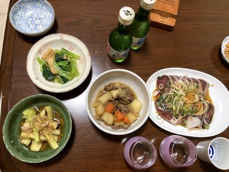おつまみはカツオのたたき以外は全部作りました(*´▽`*)